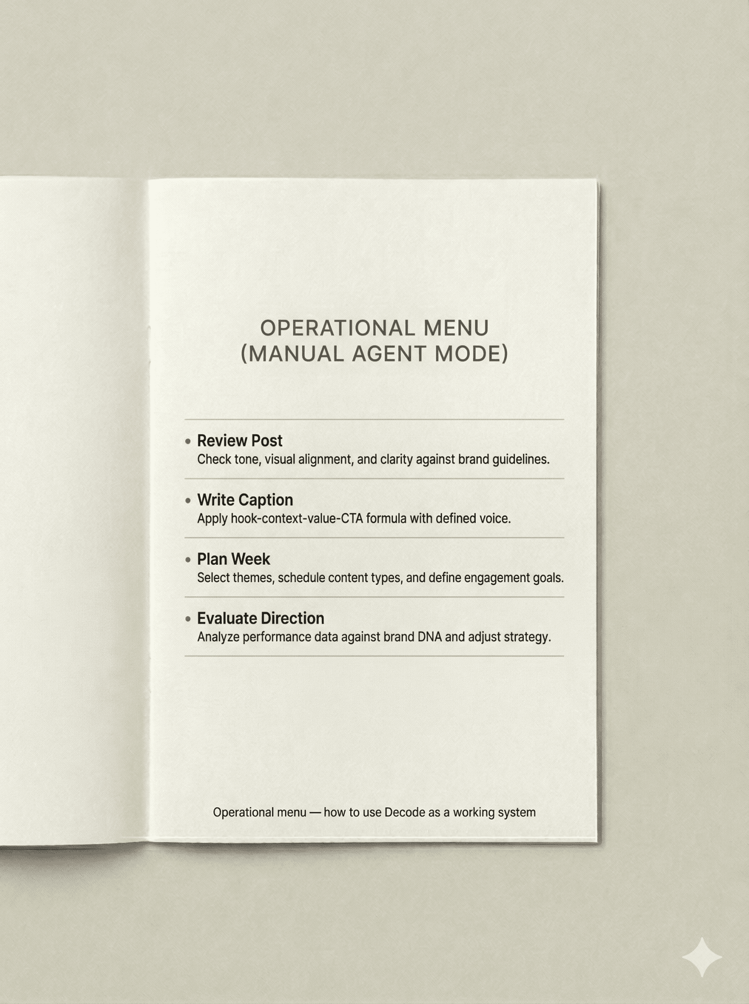 Decode L1 is a human-made content operating system — delivered as a PDF you actually work with, not just read.