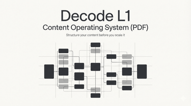 Decode L1 is a human-built content operating system, delivered as a PDF.